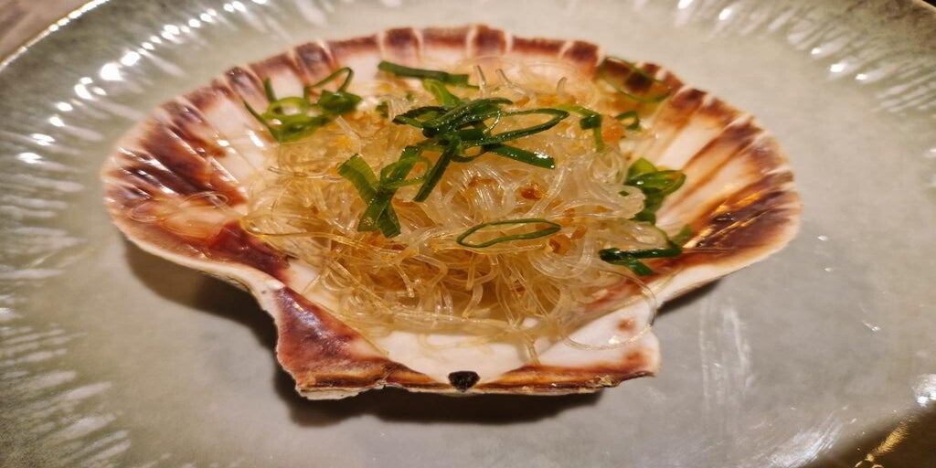 1 daarvan was een puntzakje witte rijst met gemarineerd Iberico en gepofte rijst afgemaakt met een zoete soya gemixt met Rozensiroop-alcohol (Meiguilujiu).
